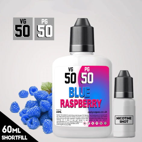 Flavour Description Flavour bursting blue raspberry. Bottle Info 50vg 50pg 0mg = 60ml bottle filled with 60ml of your chosen flavour. (NO NIC SHOT...