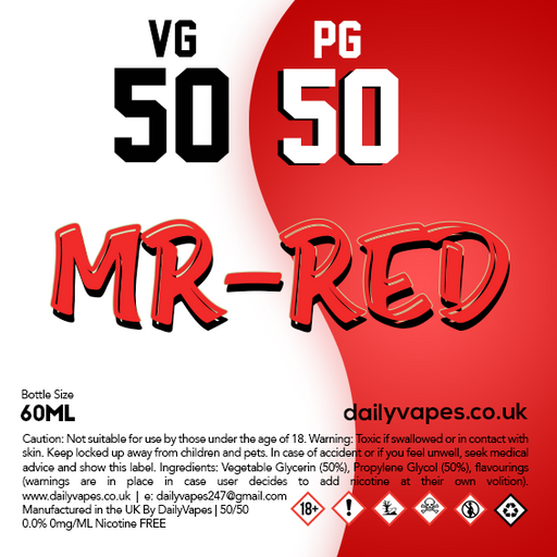 Flavour Description Red berries, eucalyptus and menthol.  Menthol lovers dream. Bottle Info 50vg 50pg 0mg = 60ml bottle filled with 60ml of your c...