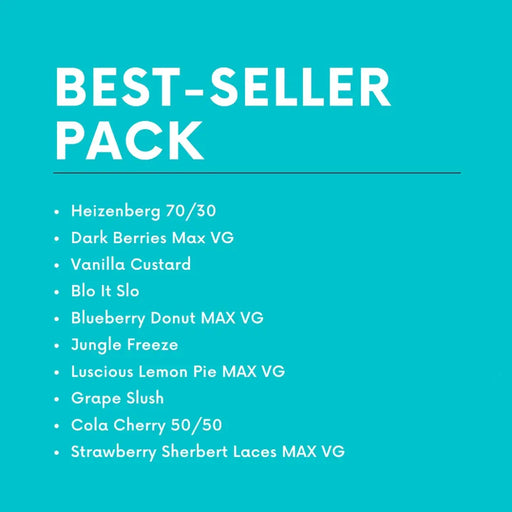 What You Get: 10x60ml Heizenberg 70/30 Dark Berries Max VG Vanilla Custard Blo It Slo Blueberry Donut MAX VG Jungle Freeze Luscious Lemon ...