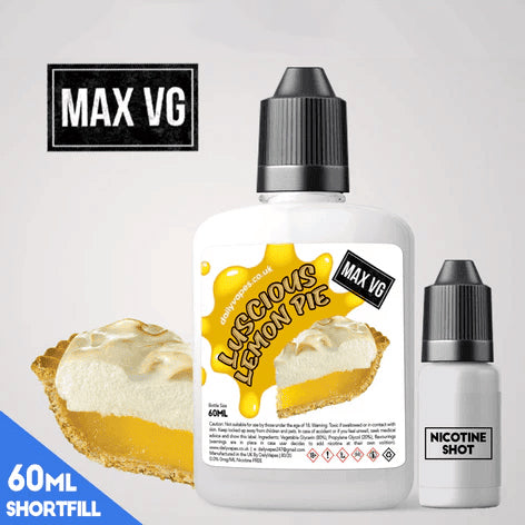 Flavour Description Soft pastry crust filled with zesty lemon curd and topped with fluffy meringue. Bottle Info Max VG (80VG+) 0mg = 60ml bottle...