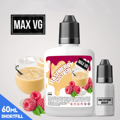 Flavour Description Thick and creamy dairy custard swirled with raspberry syrup. Bottle Info Max VG (80VG+) 0mg = 60ml bottle filled with 60ml o...