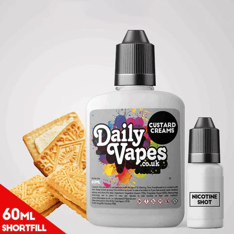 Flavour Description Classic British biscuit, silky smooth custard filling sandwiched between light biscuit. 70vg/30pg Bottle Info 0mg = 60ml bo...