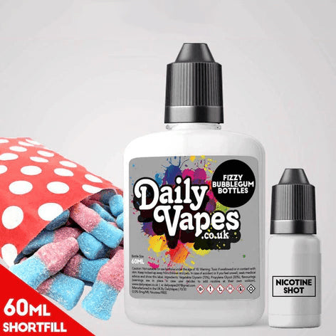Flavour DescriptionClassic pink and blue bubblegum flavoured gummy bottles with fizzy sherbert sugar coating. 70vg/30pg Bottle Info 0mg = 60ml bot...