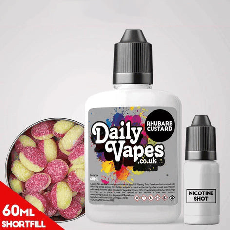 Flavour DescriptionExactly like the classic rhubarb and custard hard boiled sweet. 70vg/30pg Bottle Info 0mg = 60ml bottle filled with 60ml of you...