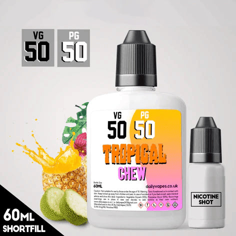 Flavour Description Juicy fruit tropical bubblegum. Bottle Info 50vg 50pg 0mg = 60ml bottle filled with 60ml of your chosen flavour. (NO NIC SHOTS...
