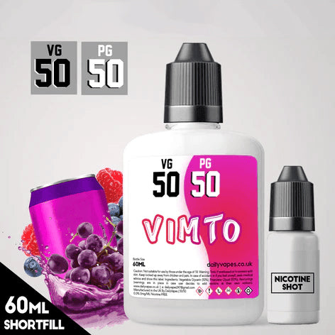 Flavour Description a tasty classic fruity purple drink. Bottle Info 50vg 50pg 0mg = 60ml bottle filled with 60ml of your chosen flavour. (NO NIC ...