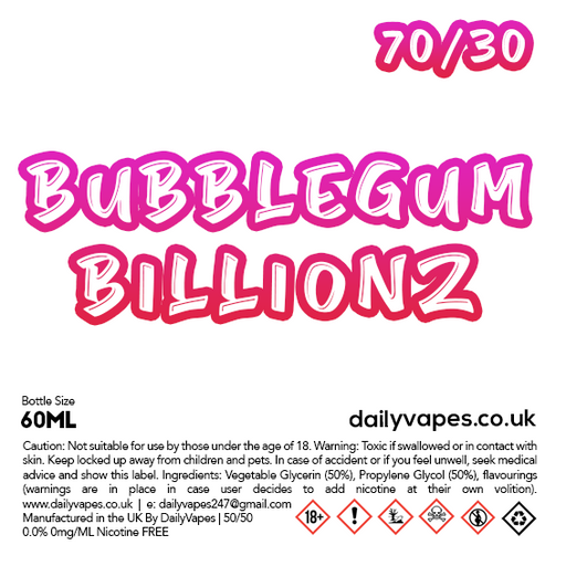 Flavour Description Classic pink bubblegum flavoured sweets. 70vg/30pg Bottle Info 0mg = 60ml bottle filled with 60ml of your chosen flavour. (NO N...
